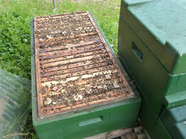 - Neben den Vorteilen geringerer Hebeleistungen und leichter Zugänglichkeit der Bruträume (lediglich durch Abnahme der Abdeckung) ist diese Trogbeutenverbund einfach und besonders günstig herzustellen, da die benötigten Materialien auf jedem Magazinimkerstand vorhanden sind.